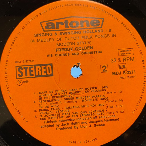 Freddy Golden His Chorus & Orchestra – Holland, Mijn Holland - Een Potpourri Van 25 Nederlandse Volksliedjes