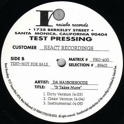 | B3 | It Takes More (Instrumental) |