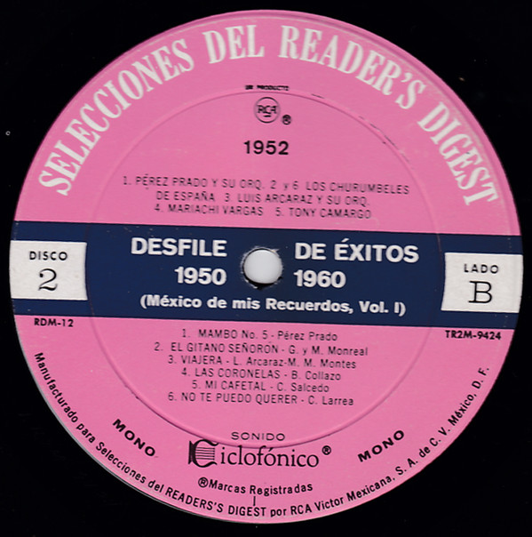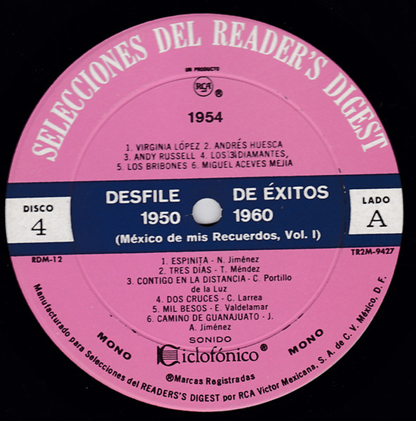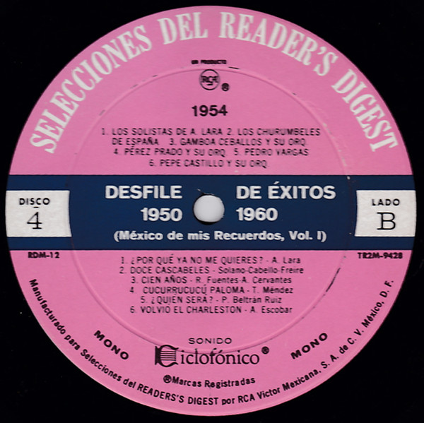 | Лейбл: | RCA – RDM-12 Selecciones Del Reader's Digest – RDM-12 Selecciones Del Reader's Digest (2) – RDM-12 |
