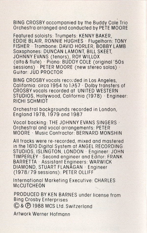 - Accompanied By [Bing Crosby Accompanied By] – The Buddy Cole Trio