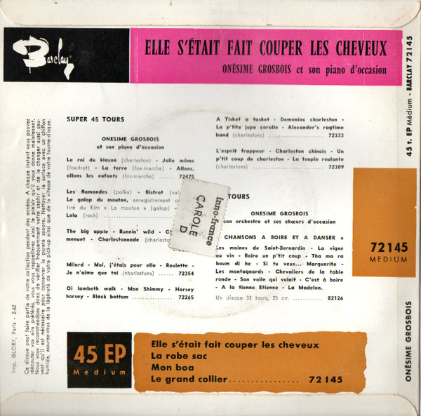 Onésime Grosbois Et Son Piano D'Occasion – Elle S'Était Fait Couper Les Cheveux - Charleston