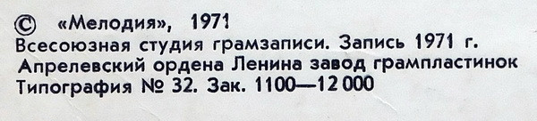 - Pressed By – Апрелевский Завод Грампластинок