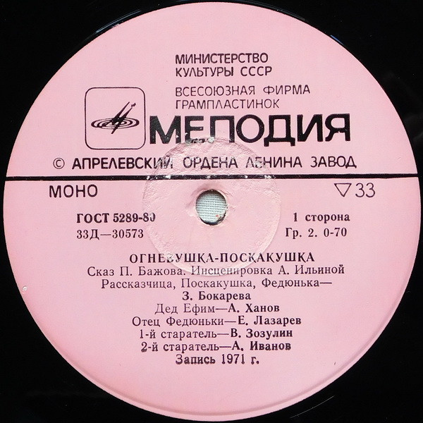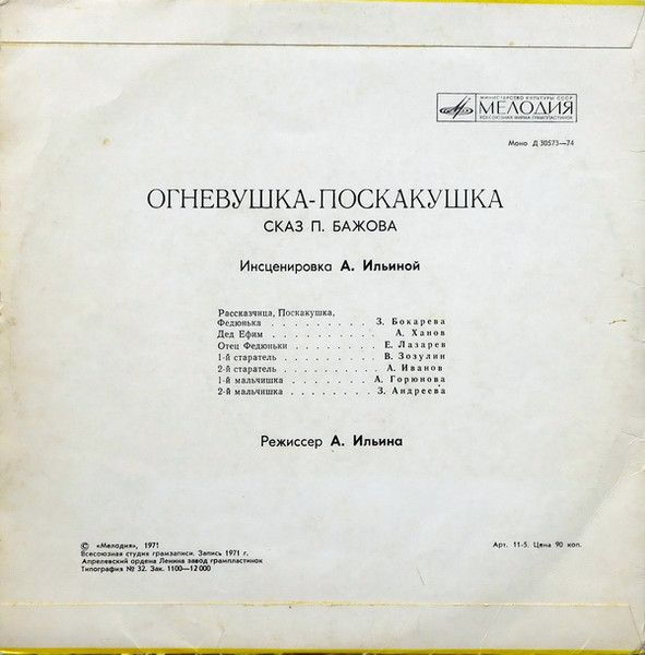 - Voice Actor [Рассказчик, Поскакушка, Федюнька] – Зинаида Бокарева