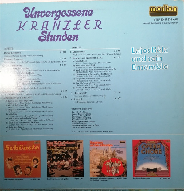Lajos Béla Und Sein Ensemble – Unvergessene Kranzler Stunden