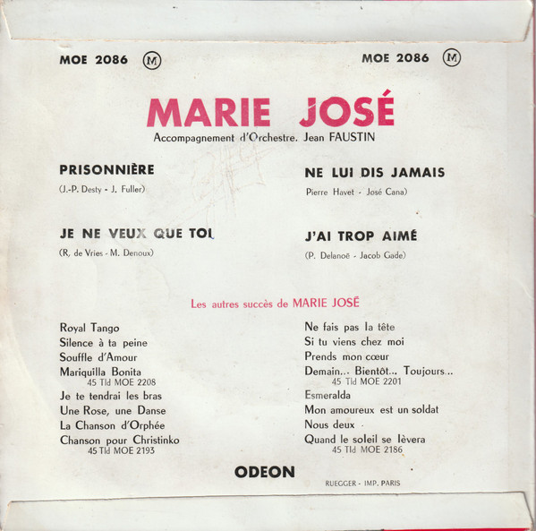 Marie-José – Prisonnière / Je Ne Veux Que Toi / Ne Lui Dis Jamais / J'ai Trop Aimé