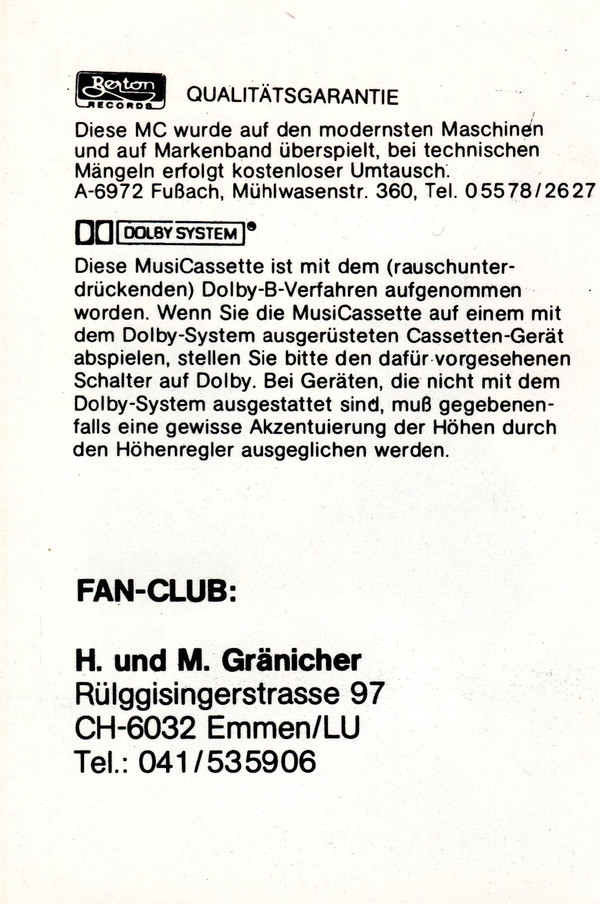 - Recorded At – Tonstudio G. Bertschler