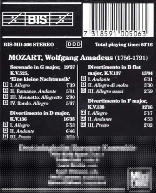 Wolfgang Amadeus Mozart – Eine Kleine Nachtmusik, K.V. 525 - Divertimentos, K.V. 136, 137, 138