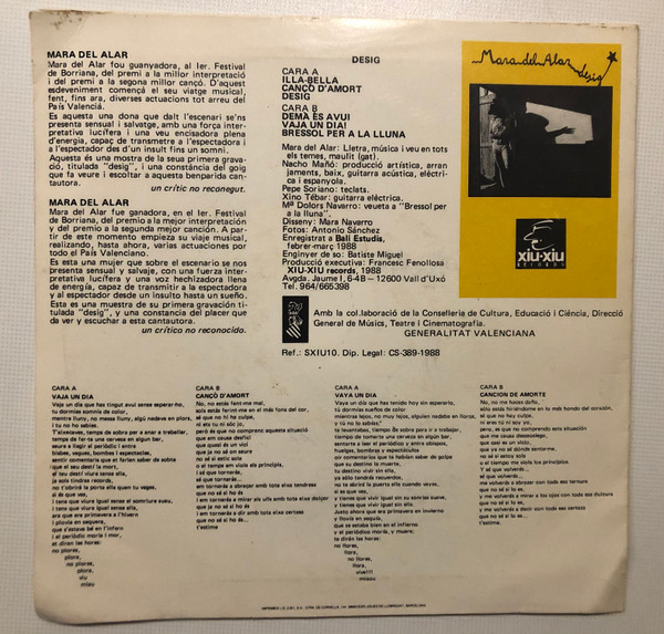 - Lyrics By [Lletra], Music By [Música], Voice [Veu] – Mara del Alar