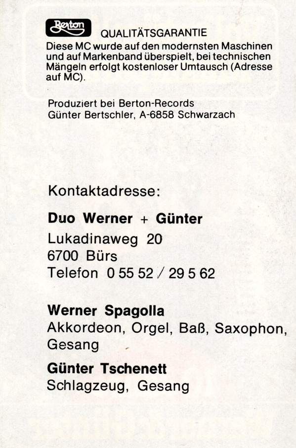 - Drums [Schlagzeug], Vocals [Gesang] – Günter Tschenett