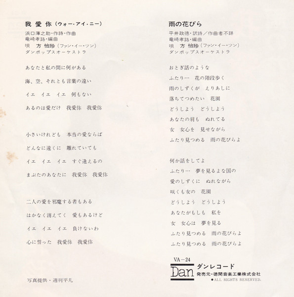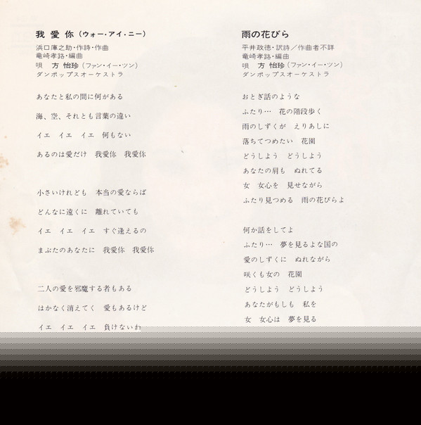 方怡珍 – ウォー・アイ・ニー / 雨の花びら