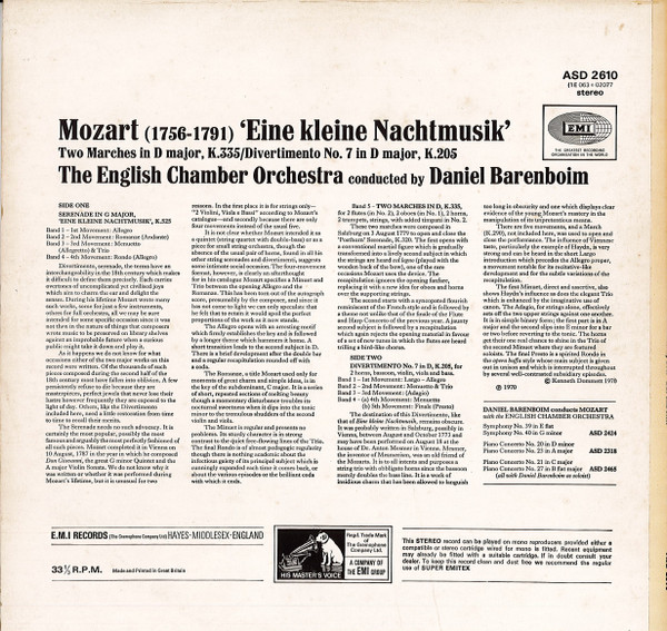 Wolfgang Amadeus Mozart – Eine Kleine Nachtmusik / Divertimento In D, K.205 / Two Marches, K.335