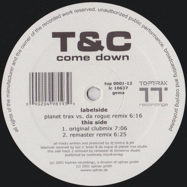 | Лейбл: | Toptrax Recordings – TOP 0001-12 |