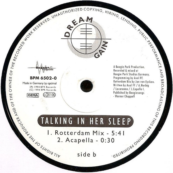 | B1 | Talking In Her Sleep (Rotterdam Mix) |