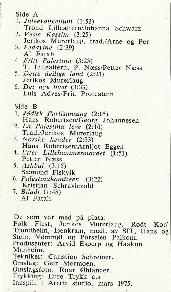 | A4 | Fritt Palestina | 3:25 | |
