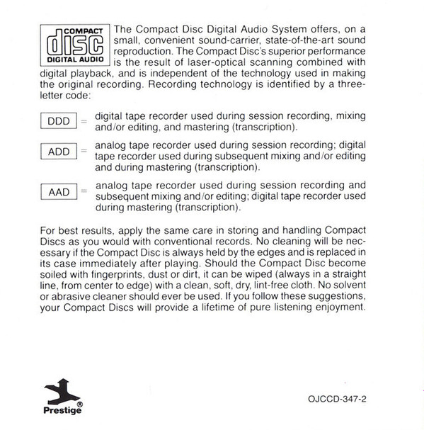 | Лейбл: | Prestige – OJCCD 347-2 Original Jazz Classics – OJCCD-347-2 |