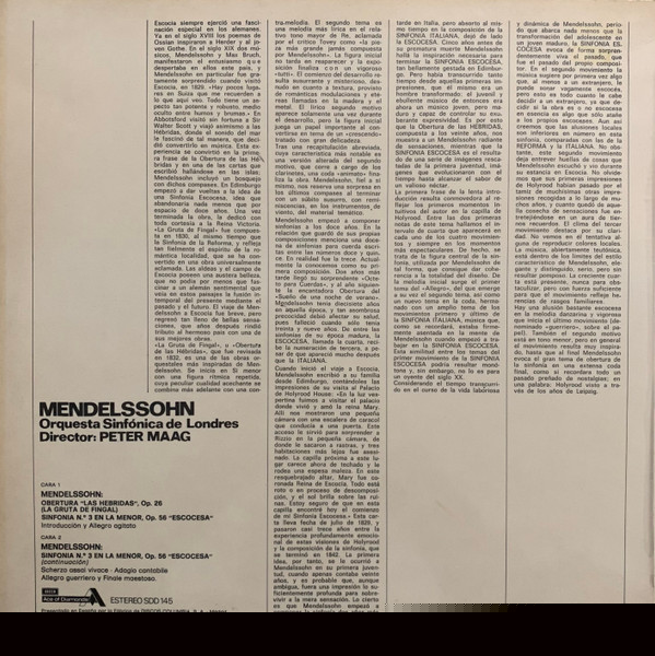 London Symphony Orchestra – Sinfonia No. 3 En La Menor, OP. 56 "Escocesa" - Obertura De Las ''Hebridas'' (La Gruta De Fingal), OP. 26