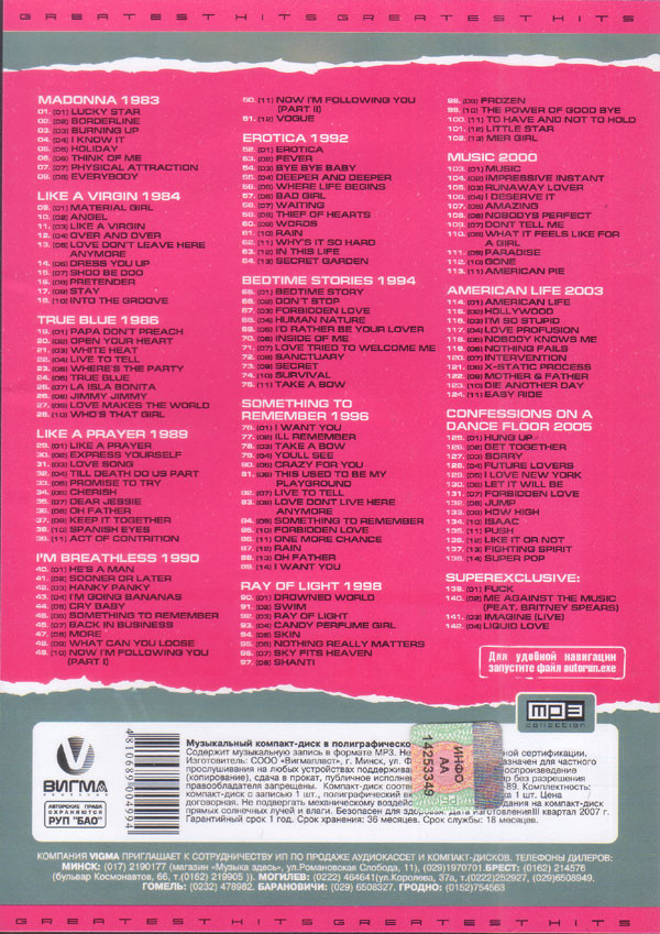 | Лейбл: | Not On Label (Madonna) – CD3534-2007 |