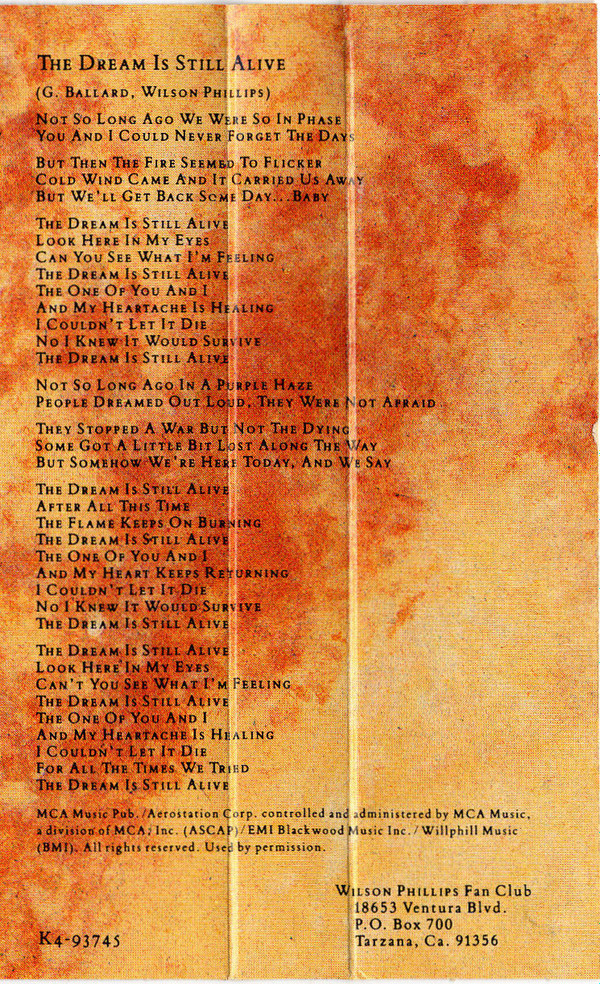 | B5 | The Dream Is Still Alive |