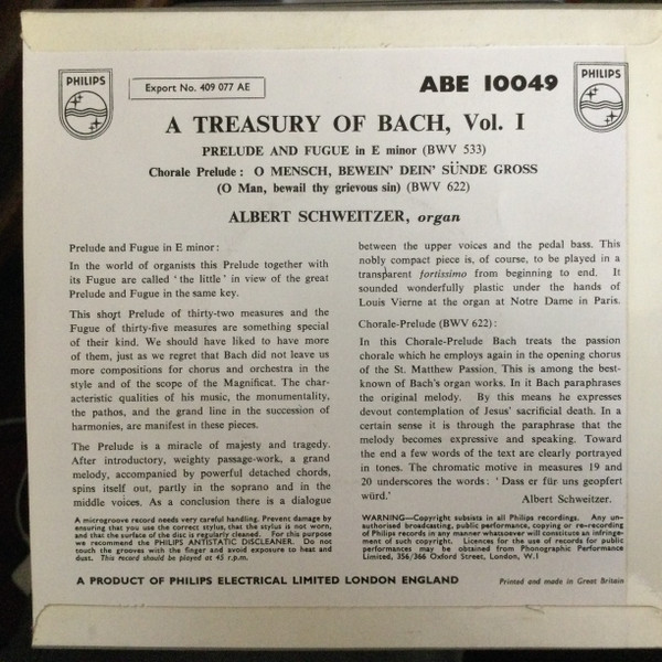 Albert Schweitzer – A Treasury Of Bach, Vol. 1