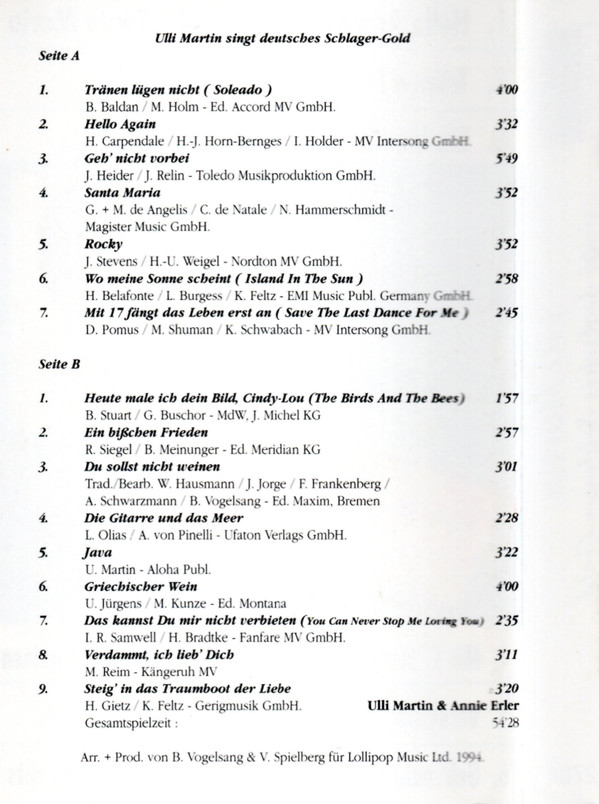 Ulli Martin Written By – R. Siegel/B. Meinunger Written-By – Bernd Meinunger Written-By – Ralph Siegel |