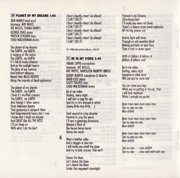 Bass – Arthur Barrow Drums – Chad Wackerman Guitar – Steve Vai Harmony Vocals – Ray White Harmony Vocals – Roy Estrada Harmony Vocals – Bobby Martin (2) Harmony Vocals – Bob Harris Keyboards – Tommy Mars Lead Vocals – Frank Zappa Percussion – Ed Mann Written-By – Ahmet Zappa Written-By – Frank Zappa |