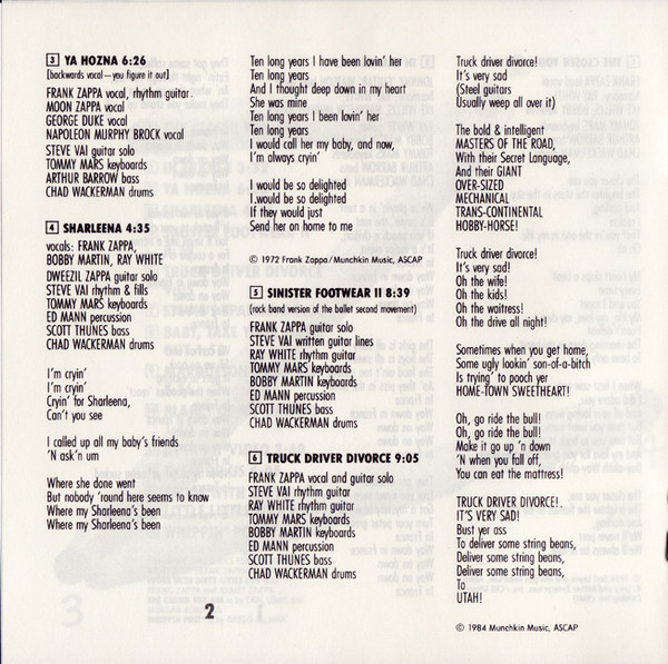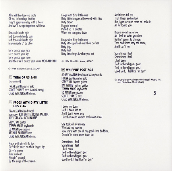 - Written-By, Lyrics By – Frank Zappa