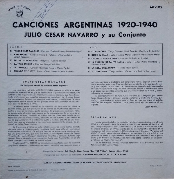 | Лейбл: | Martin Fierro – MF-102 |