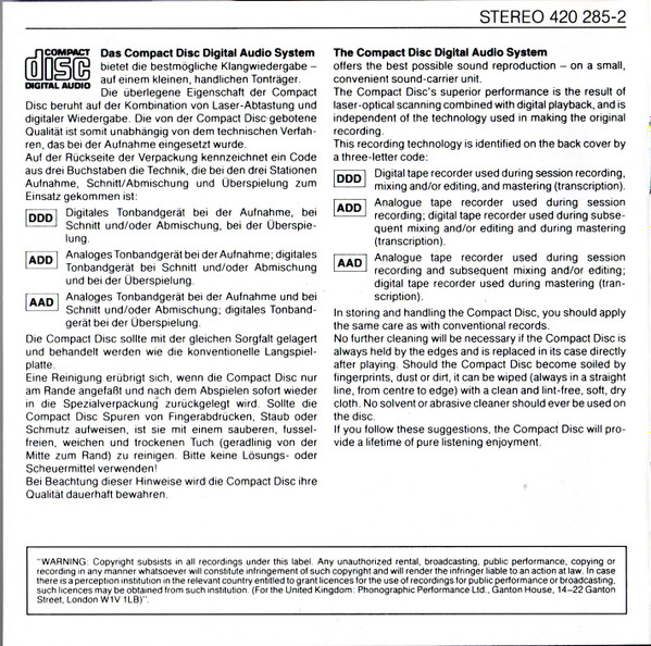 - Other Cat.-nr. CD3: 420 288-2