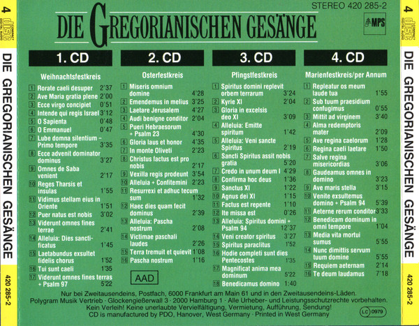 - Matrix / Runout CD1: 420 286-2 01 # MADE IN GERMANY BY PMDC YY