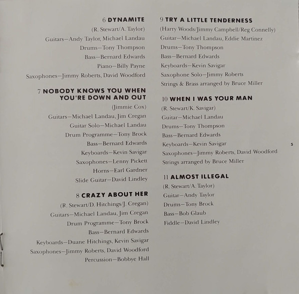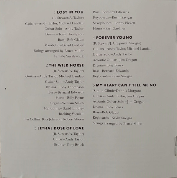 Arranged By [Strings] – Bruce Miller (2) Bass – Bernard Edwards Drums – Tony Thompson (2) Guitar – Michael Landau Keyboards – Kevin Savigar Saxophone – David Woodford Saxophone – Jimmy Roberts Written-By – Rod Stewart Written-By – Kevin Savigar |