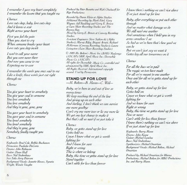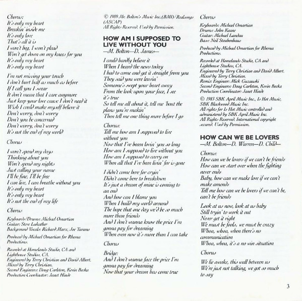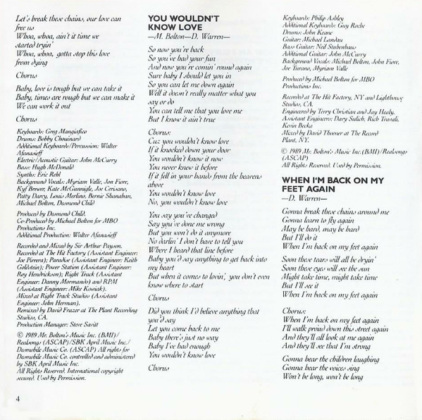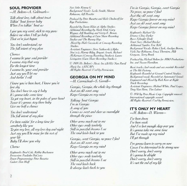 Backing Vocals – Michael Bolton