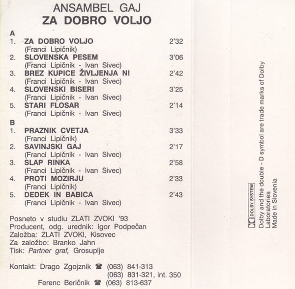 Ansambel Gaj – Za Dobro Voljo