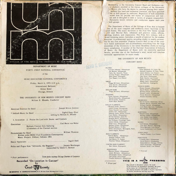 The University Of New Mexico Concert Band – Music Educators National Conference 1970