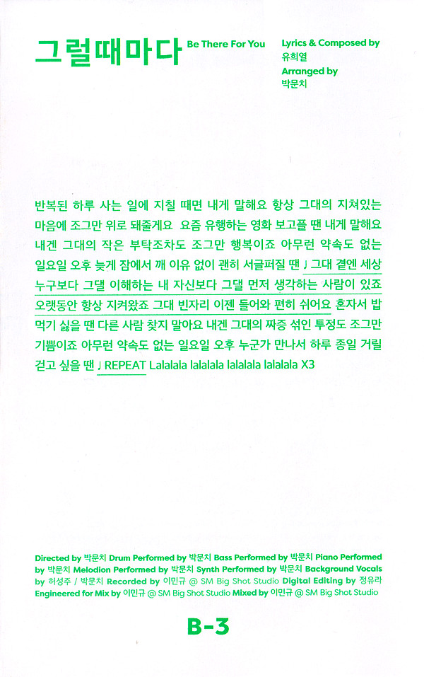 | B3 | 그럴때마다 (Be There For You)