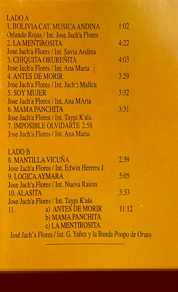 | A3 | Chiquita Orureñita | 4:03 | |