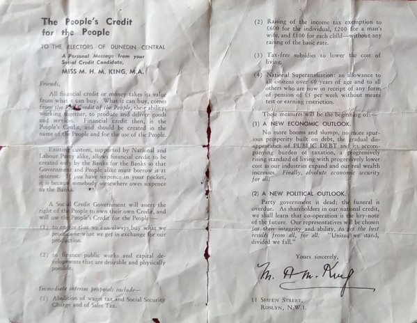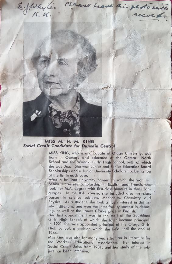 Miss M.H.M King – Social Credit Political Policies