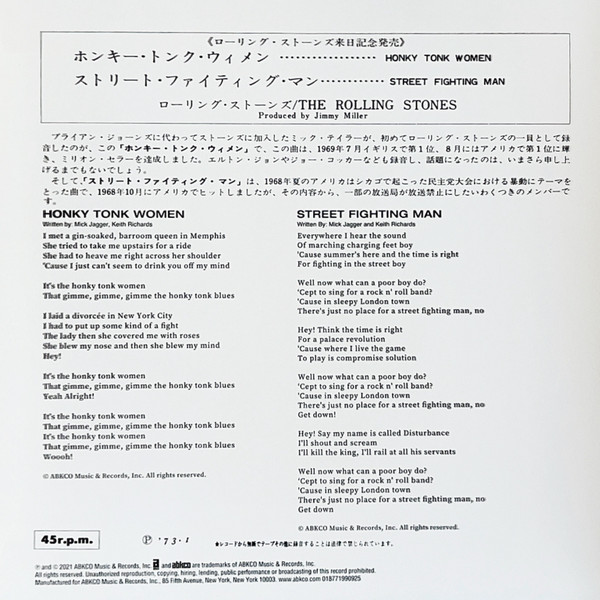 The Rolling Stones – Honky Tonk Women / Street Fighting Man