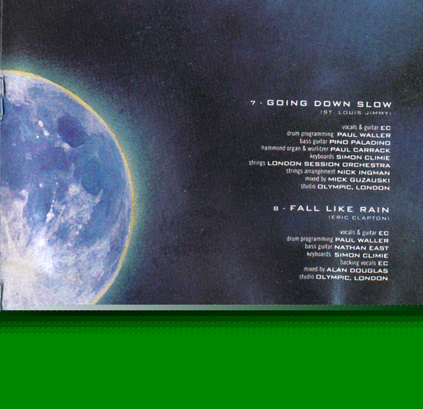 Arranged By [String Arrangements] – Nick Ingman Bass Guitar – Pino Palladino Drum Programming – Paul Waller Keyboards – Simon Climie Mixed By – Mick Guzauski Organ [Hammond], Electric Piano [Wurlitzer] – Paul Carrack Strings – The London Session Orchestra Vocals, Guitar – Eric Clapton Written-By – St. Louis Jimmy Oden |