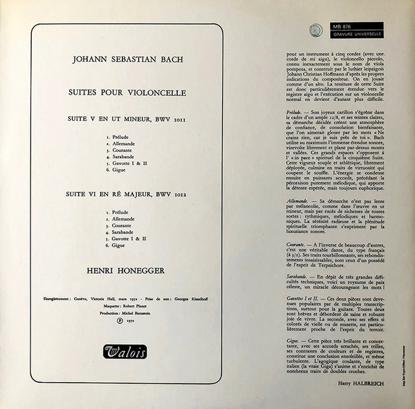 "Das Schaffen Johann Sebastian Bachs", Suite Für Violoncello Solo Nr. 1 G-Dur, BWV 1007 / Nr. 2 D-Moll, BWV 1008