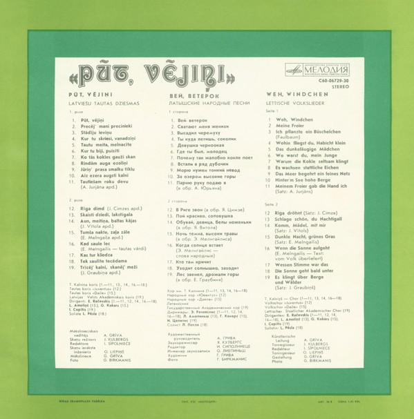 Arranged By – Jānis Cimze |