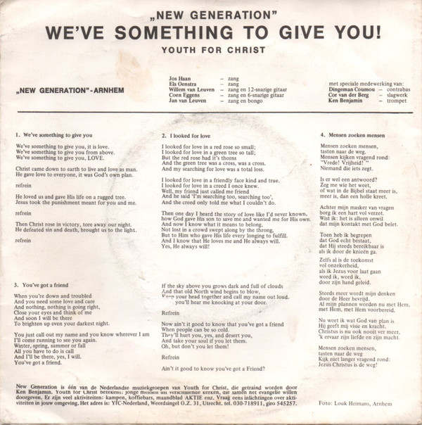 | Лейбл: | Not On Label – 6802 353 Youth For Christ-Nederland – 6802 353 |