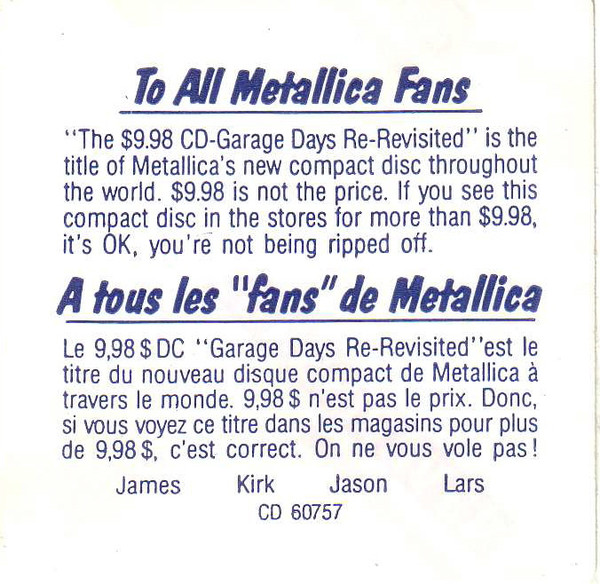 Metallica – The $9.98 C.D. Garage Days Re-Revisited