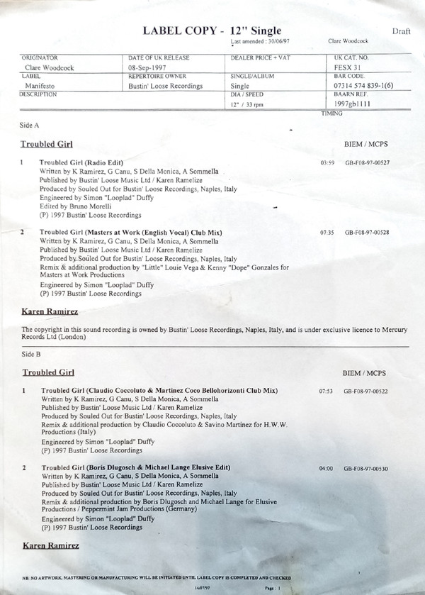 Лейбл и каталожный номер |