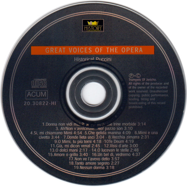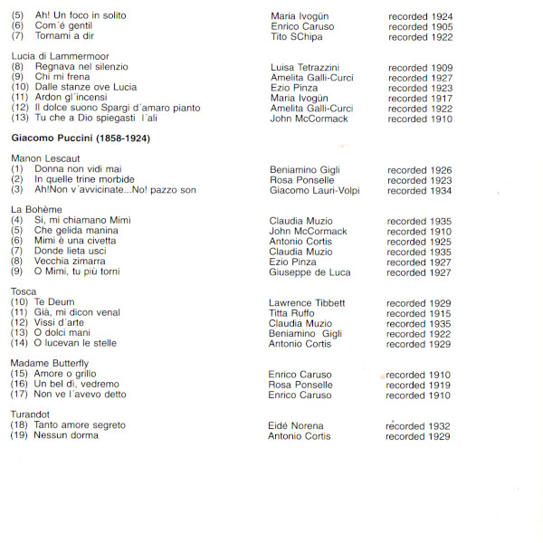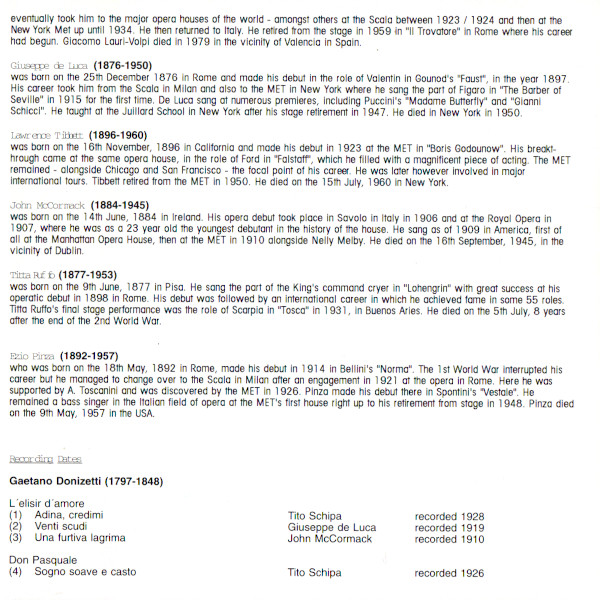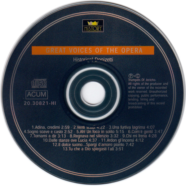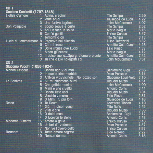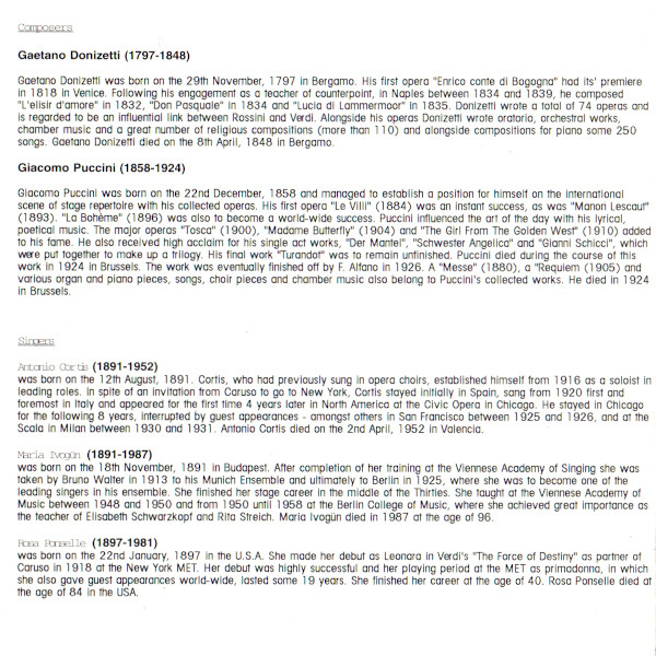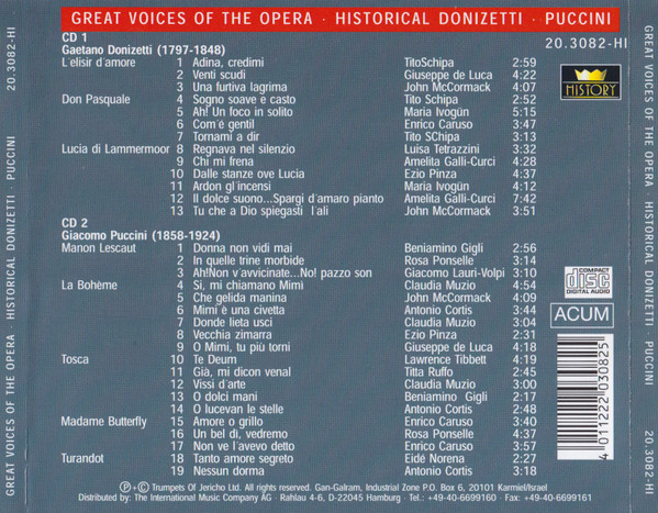Various – Great Voices Of The Opera • Historical Donizetti-Puccini