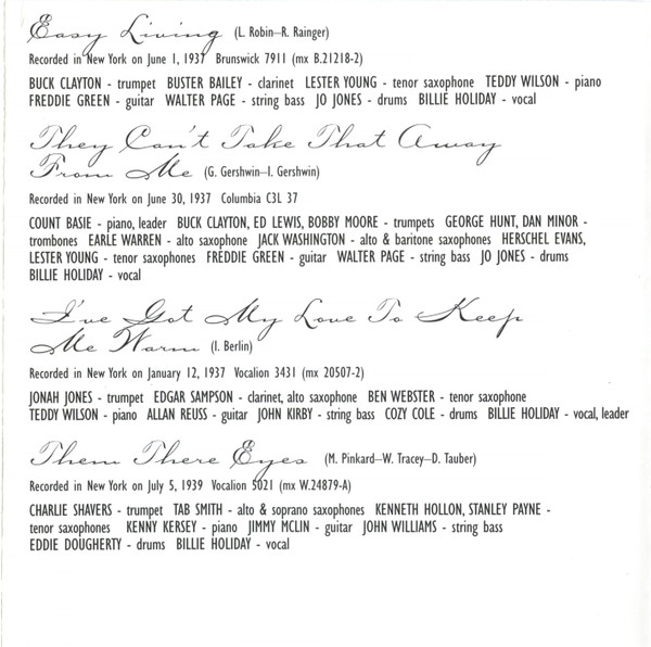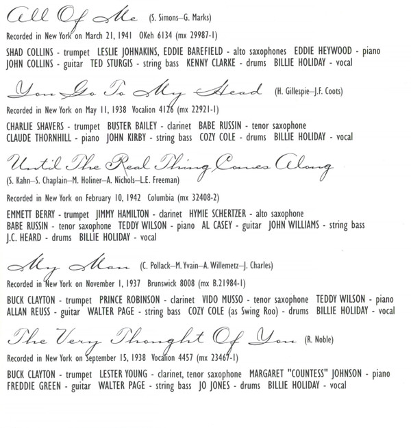- Vocals – Billie Holiday