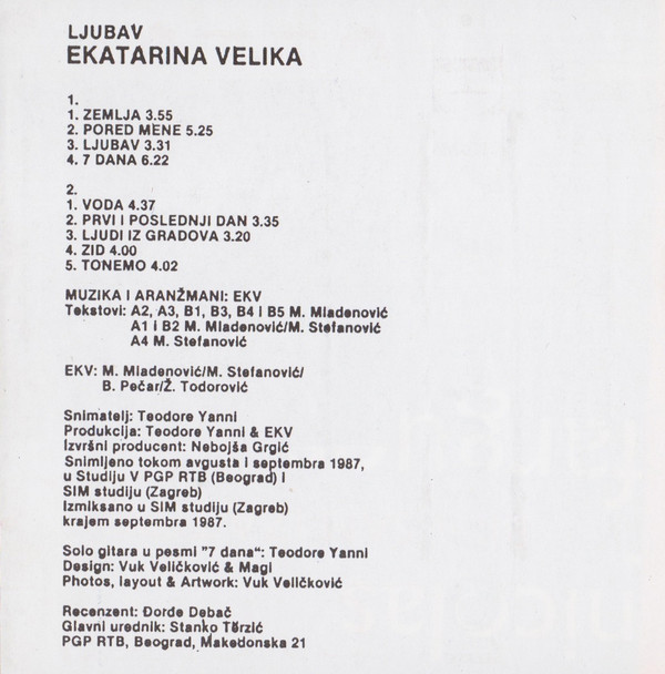 - Recorded At – Studio PGP RTB, Beograd
