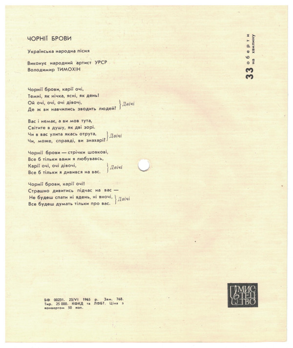 | Лейбл: | Мистецтво – 33ДИ 15825 |
