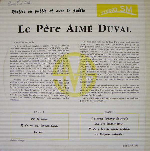 | Лейбл: | Editions Studio S.M. – SM 33-71 Editions Studio S.M. – SM 33-71 (médium) |