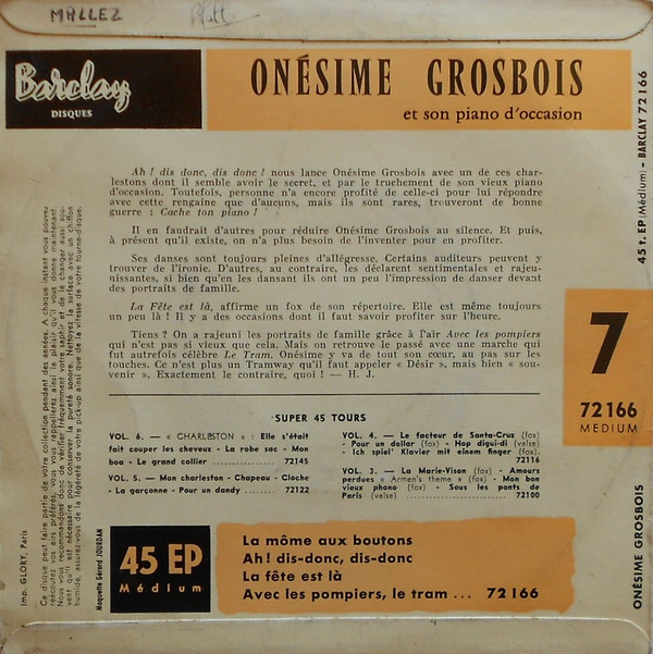 Onésime Grosbois Et Son Piano D'Occasion – La Mome Aux Boutons