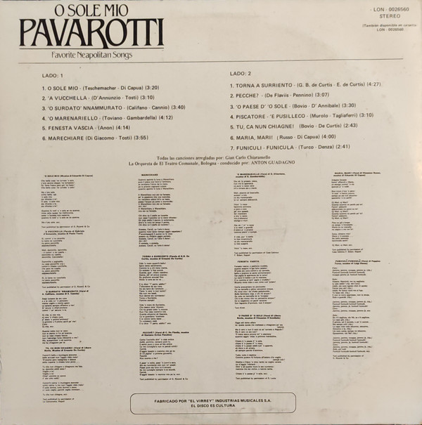 - Manufactured By – "El Virrey" Industrias Musicales S.A.